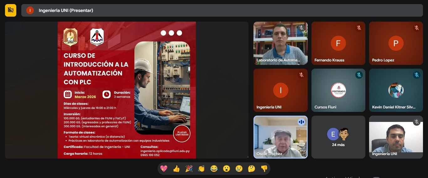 La Facultad de Ingeniería de la Universidad Nacional de Itapúa (FIUNI) dio inicio al Curso de Introducción a la Automatización con PLC, una propuesta de capacitación orientada a fortalecer las competencias en automatización industrial y control de procesos mediante controladores lógicos programables.